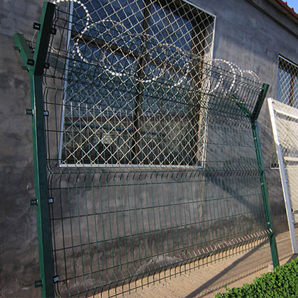 監(jiān)獄監(jiān)管區(qū)隔離網(wǎng) 監(jiān)獄通透式鋼網(wǎng)墻又稱作“Y型安全防御護(hù)網(wǎng)”,該產(chǎn)品主要采用高強(qiáng)度鋼絲網(wǎng)片與蛇覆式刀片刺網(wǎng)和防盜連接件組合而
