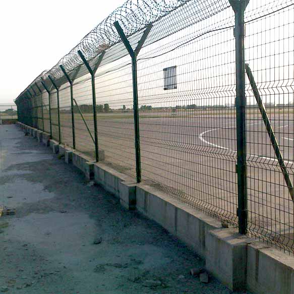機場外圍隔離網(wǎng)又稱作“Y型安全防御護網(wǎng)”“機場圍欄”“機場隔離柵““機場圍網(wǎng)”,它是一種用于機場外圍的安全防護使用的護欄產(chǎn)