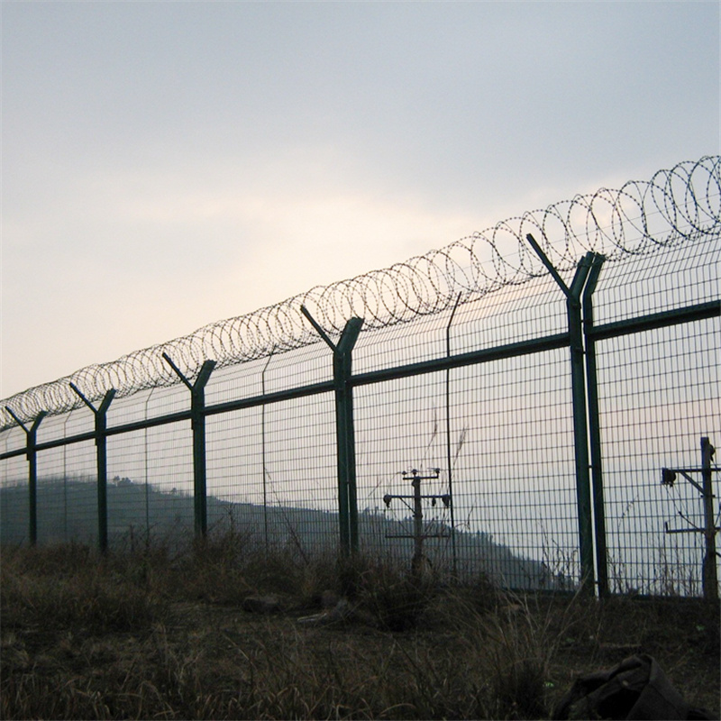 機(jī)場護(hù)欄網(wǎng)又稱作“Y型安全防御護(hù)網(wǎng)”,是由V型支架立柱,加強(qiáng)型焊接片網(wǎng),安全防盜連接件和熱鍍鋅刀片刺籠組成強(qiáng)度和安全防御性級(jí)別很高。近年來,被廣泛應(yīng)用在機(jī)場,軍事基地等高安全場所。