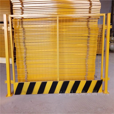 基坑臨邊護(hù)欄網(wǎng)片設(shè)計(jì)為黃色、立柱為紅色,均為噴繪,以達(dá)到紅白相間的警示效果。網(wǎng)片網(wǎng)格為50*50mm,鋼絲直徑為3.5mm。