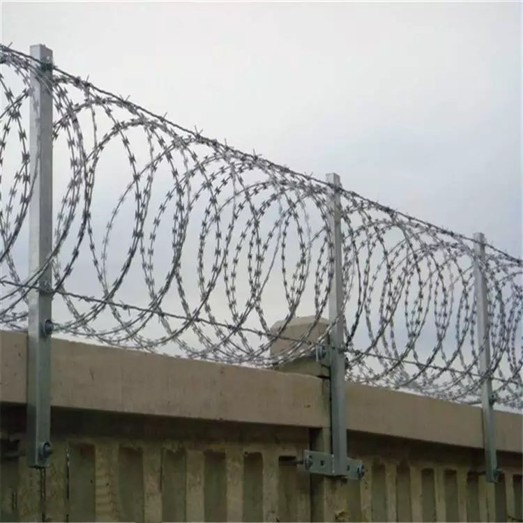 不銹鋼刀刺網(wǎng)產(chǎn)品優(yōu)勢(shì)及使用范圍,防攀爬刀刺網(wǎng)是一種新型的防護(hù)網(wǎng),隔離能力較強(qiáng)的新型防護(hù)網(wǎng)產(chǎn)品。它采用鋼板沖壓成型包附于鋼絲之上,由銳利尖角鍍鋅鋼板或不銹鋼薄板做刀片,高張力鋼絲做芯線組合而成的。根據(jù)形狀可分為:螺旋式-刀片刺網(wǎng)、交叉式-刀刺網(wǎng)、平板式-刀片刺網(wǎng)、直線式-刀片刺網(wǎng)。