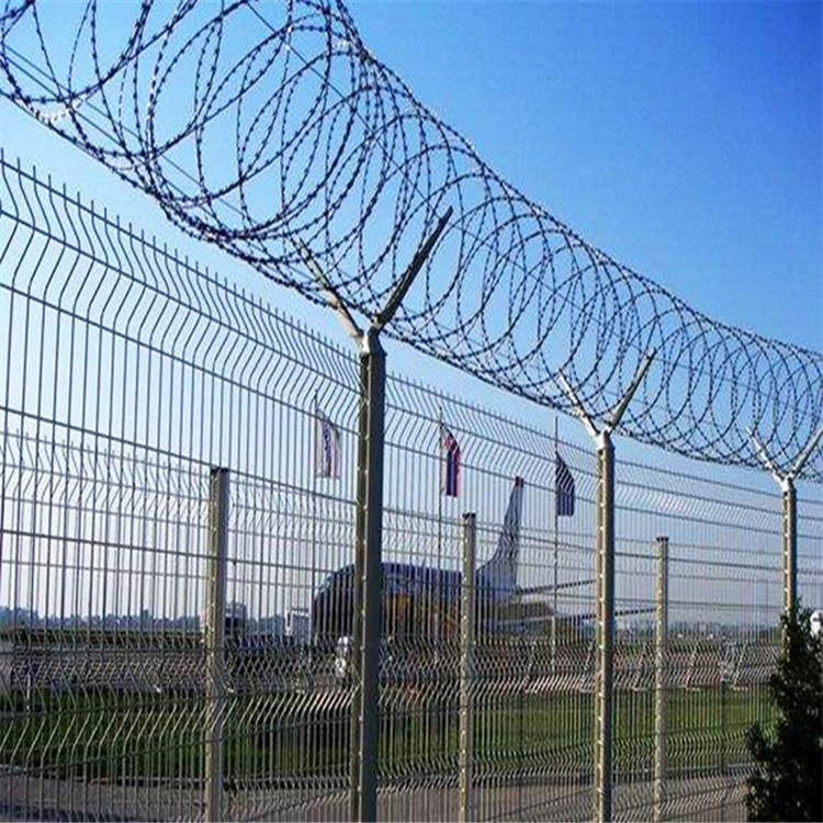 飛機圍界是做什么的?飛機圍界是機場邊界的重要保護措施,是為防止人為破壞,保證機場安全,讓飛機順利起飛的護欄產品,這種護欄網表面采用電鍍、熱鍍、浸塑、噴塑等處理方式,實現(xiàn)顏色多樣多化,在連接方式上采用特制SBS緊扣件,防止人為破壞拆卸,又在網片上加裝橫向四道折彎回強筋,使整體既美觀又實用。,機場圍界根據結構分類,可以分為菱形網圍界和方孔鋼筋網圍界,區(qū)別就是二者的生產工藝不同,一種是用勾花網用作網板或斜方孔網片用作網板,另外一種是用鋼筋網片或電焊網片用作網板來制作機場圍界