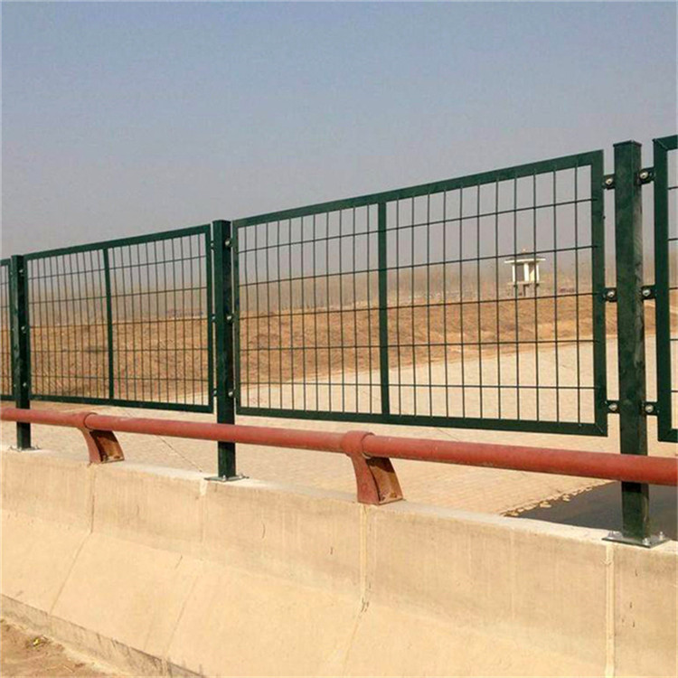 橋梁護欄網(wǎng)具有組裝靈活、用途廣泛的特點。它主要采用盤條作為原料,經(jīng)由鍍鋅,pvc包塑的網(wǎng)面,具有日久抗腐蝕,抗紫外線的特性。包塑厚度可達到1.0mm以上。網(wǎng)面具有較強的抗沖擊力。網(wǎng)邊一般有勾邊和擰邊兩種。用于中國的公路、鐵路、高速公路等;既可以制作成網(wǎng)墻,又可以作為臨時隔離網(wǎng)使用,只需采用不同的立柱固定方式便可實現(xiàn)。在桃型柱護欄網(wǎng)生產(chǎn)完以后,所有部件都要經(jīng)除銹、打磨、鈍化、硫化等工藝后,采用鍍塑處理,色彩為果綠色,鍍層厚度為0.5~0.6mm,鍍粉采用抗老化性能較佳的進口耐候性樹脂粉料,鍍層必須顏色一致,表面光滑,不允許有流掛、滴瘤或多余結塊。鍍件表面應無漏鍍、露鐵等缺陷。所謂:框架護欄網(wǎng)又稱為“框架隔離柵”,它是把金屬網(wǎng)(或鋼板網(wǎng)、刺鐵絲)繃緊在支撐結構上的柵欄。用于阻止人、畜進入公路或其他禁入?yún)^(qū)域,防止非法占用公路用地的設施,以保證道路使用者的快速、便捷和安全。護欄的立柱:通??蛇x擇普通圓管,蘑菇型異性管,頂端蓋有塑料蓋或防雨帽。表面處理為鍍鋅和噴涂,也可以任選一種。安裝配件:網(wǎng)片和立柱靠螺絲和各種特殊的金屬卡子或者使用綁絲連接的。所用的螺絲均為自動防盜的。所用配件也可以按照客戶的餓不同要求來具體設計。