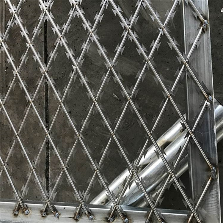 刀片隔離網(wǎng)主要用于園林公寓。刀片隔離網(wǎng)由銳利尖角鍍鋅鋼板或不銹鋼薄板做刀片,高張力鋼絲做芯線組合而成的阻絕器材。直線形刀片刺網(wǎng)由刀片型直線刺網(wǎng)交叉焊接成型。由于刀片刺繩防護(hù)網(wǎng)造形獨特不易觸摸,因而能達(dá)到極好的防護(hù)隔離效果。該產(chǎn)品具有嚇阻效果好,美觀,施工便利,經(jīng)濟(jì)實用等優(yōu)異特點。