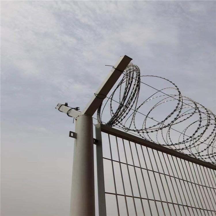 象;刀刺網(wǎng)安裝與隔離網(wǎng)平行,上下左右均成直線延伸,轉(zhuǎn)角處需做加密加固處理。
