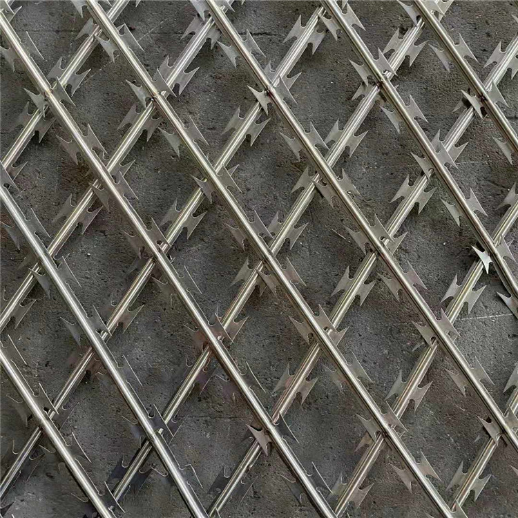 監(jiān)獄刀片鋼網(wǎng)墻具有嚇阻、防翻越等效果 具有嚇阻、防翻越等效果,材質(zhì)堅(jiān)硬,高強(qiáng)度,高張力,造型設(shè)計(jì)獨(dú)特,不宜觸摸,因而能達(dá)到極好的防護(hù)隔離效果.監(jiān)獄護(hù)欄網(wǎng)還具有施工簡(jiǎn)便,經(jīng)濟(jì)實(shí)用等優(yōu)點(diǎn).