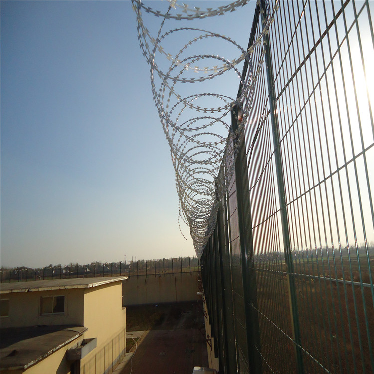 看守所隔離柵欄-巡道防護(hù)網(wǎng)上部會安裝刀片刺網(wǎng)(刺絲滾籠),刀片刺網(wǎng)具有嚇阻、防翻越的效果,材質(zhì)堅硬,高強度,高張力,造型設(shè)計獨特,不宜觸摸,因而能達(dá)到極好的防護(hù)隔離效果。看守所隔離柵欄-巡道防護(hù)網(wǎng)還具有施工簡便,經(jīng)濟實用等優(yōu)點.