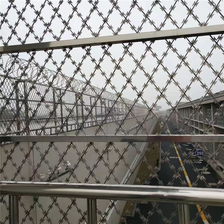 焊接刀刺網(wǎng)是把刀片刺絲焊接成菱形孔或者方形孔的刺網(wǎng),如果有人想攀爬翻越,網(wǎng)狀的刀片刺絲刀片鋒利,手不能握,腳不能攀登,堅(jiān)決阻止人逾越的防護(hù)墻,具有很強(qiáng)的恐嚇和阻止效果,既美觀又實(shí)際效果顯著.