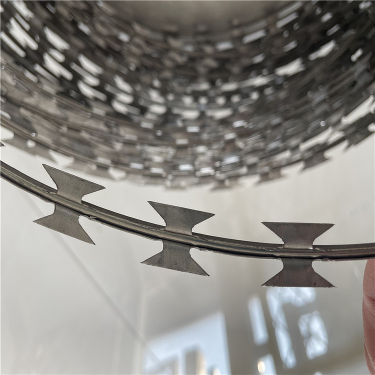 教你怎樣裝置刺絲滾籠︰刺絲滾籠由刀片刺繩制成,相鄰的兩個(gè)環(huán)每隔120度用刺刀銜接卡箍固定。張開(kāi)構(gòu)成蛇網(wǎng)。合攏后,刀片卡口繩直徑為50cm.開(kāi)啟后,每個(gè)十字環(huán)的裝置距離為20cm,直徑不小于45cm.通過(guò)對(duì)偏切鋼板的機(jī)械軋制,在鋼絲上構(gòu)成刀片的綁繩。刺寬22mm,刀片垂直距離15mm,刺縱向距離34mm,芯徑2.5mm.葉片厚度0.5mm的Q195鋼網(wǎng)選用沖孔加工。