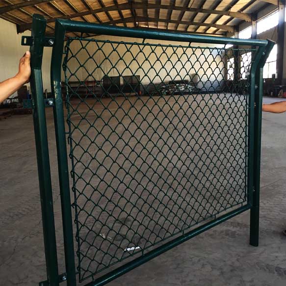 球場(chǎng)圍網(wǎng)由圍網(wǎng)框架+整體式拉網(wǎng)模式,結(jié)構(gòu)簡(jiǎn)單耐用,整體效果好,性價(jià)比高。圍網(wǎng)的骨架通過直通、三通、四通等專用扣件將立柱和橫梁連成整體呈”口”或”日”字型,用高強(qiáng)度螺栓固定,圍網(wǎng)高度為4000mm,兩立柱間距三米左右;待圍網(wǎng)骨架搭建成型后,現(xiàn)場(chǎng)整體張拉圍網(wǎng),并用扁鐵固定在骨架的立柱及橫梁上?!九鋫?個(gè)1200mm*2000mm的單開式框架門】