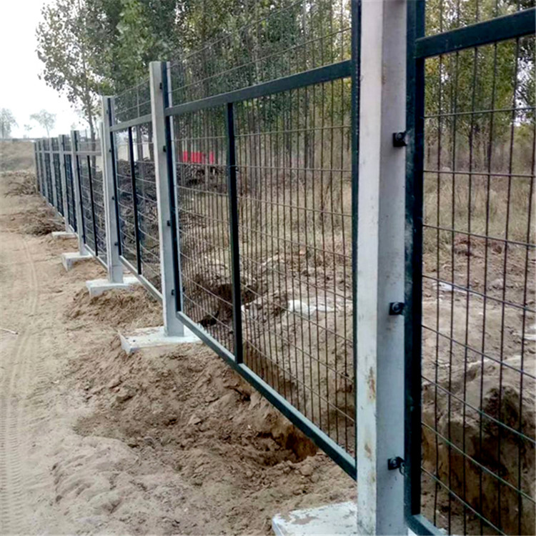 鐵路金屬防護(hù)網(wǎng)幾大類型介紹為:雙邊絲護(hù)欄,直框護(hù)欄,頂部30°折彎的護(hù)欄。一般鐵路線路兩側(cè)為了阻止落石或者阻擋外界的任何動(dòng)物的時(shí)候會(huì)選擇雙邊絲護(hù)欄網(wǎng)作為隔離網(wǎng)。鐵路鐵軌兩側(cè)會(huì)使用直框護(hù)欄或者加折彎的護(hù)欄作為防護(hù)網(wǎng)。但是作為鐵路防護(hù)柵欄的護(hù)欄邊框不能使用普通的20*30的小邊框,而是采購(gòu)30*40的方管邊框作為護(hù)欄網(wǎng)的邊框與低碳鋼絲焊接?;蛘呤且凿摪寰W(wǎng)作為網(wǎng)片,四周焊接角鐵,也被稱為框架型的鐵路防護(hù)柵欄。安裝尺寸:1.8米*3米,柱中到柱中,鐵路線路上常采用水泥立柱與網(wǎng)片連接。邊框:30*40mm,或者40*40的角鐵。表面處理:浸塑草綠色或者浸塑墨綠色。